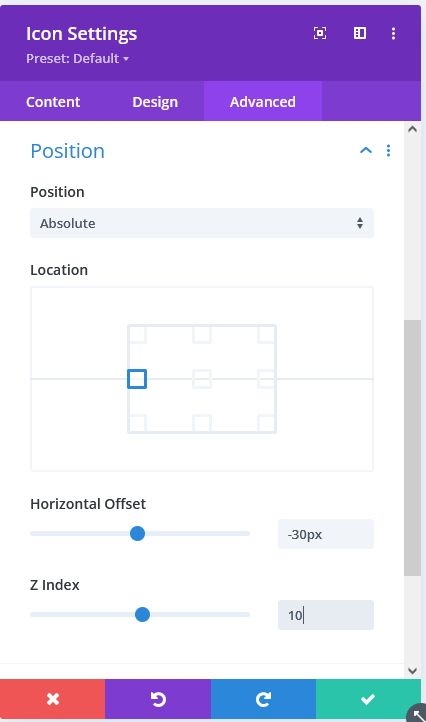 | Horizontal Offset | -30px (adjust based on design) |