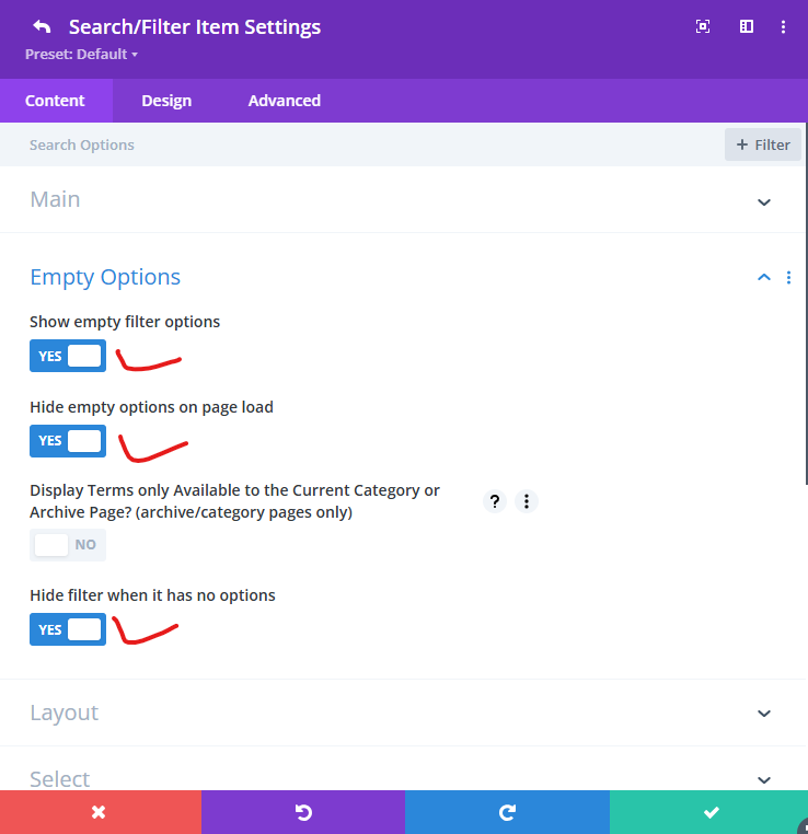 - Hide empty options on page load: YES